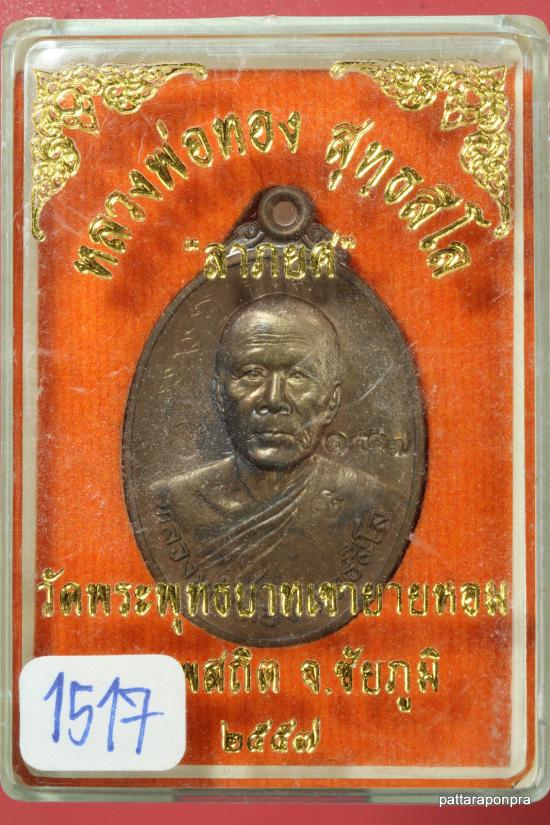 เหรียญหลวงพ่อทอง รุ่นลาภยศ ปี 2557 เนื้อทองชนวน มีจารหลวงพ่อ หมายเลข 1517 |