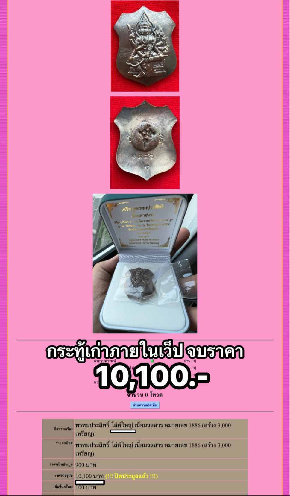 ชื่อพระเครื่อง (วัดใจต่ำกว่าทุน ) โล่ห์ใหญ่ พรหมประสิทธิ์ อั๋น โอกิ รายการยอดนิยมรองท๊อป มหามวลสาร มูลค่ากว่า 100 ล้าน (ผง+โลหะ) พระสวยสมบูรณ์ มีกล่อง ซีลพลาสติกเดิม ช่วงกระแส ปิดหน้าไลฟ์สดกัน 25,000 บวกลบ