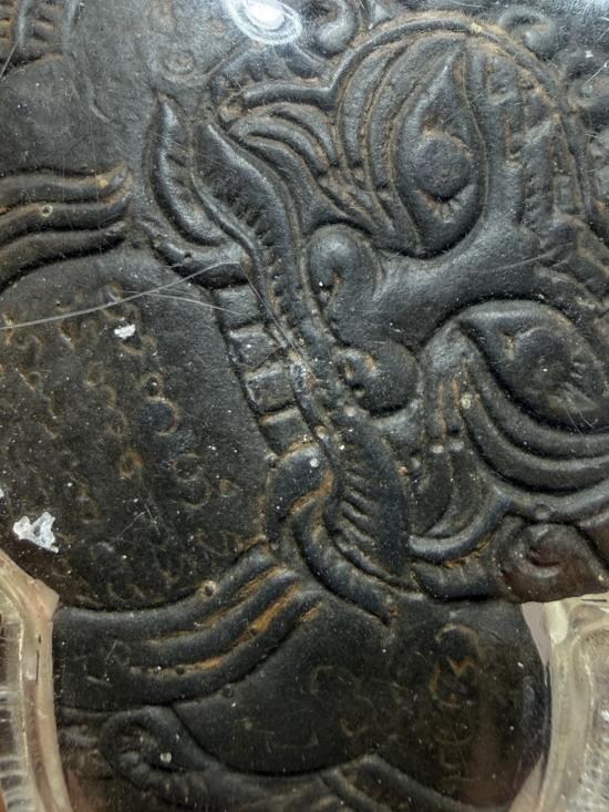 ราหูอมจันทร์ เนื้อกะลา มีจาร ด้านหน้า-หลัง ไม่ทราบที่ครับ |