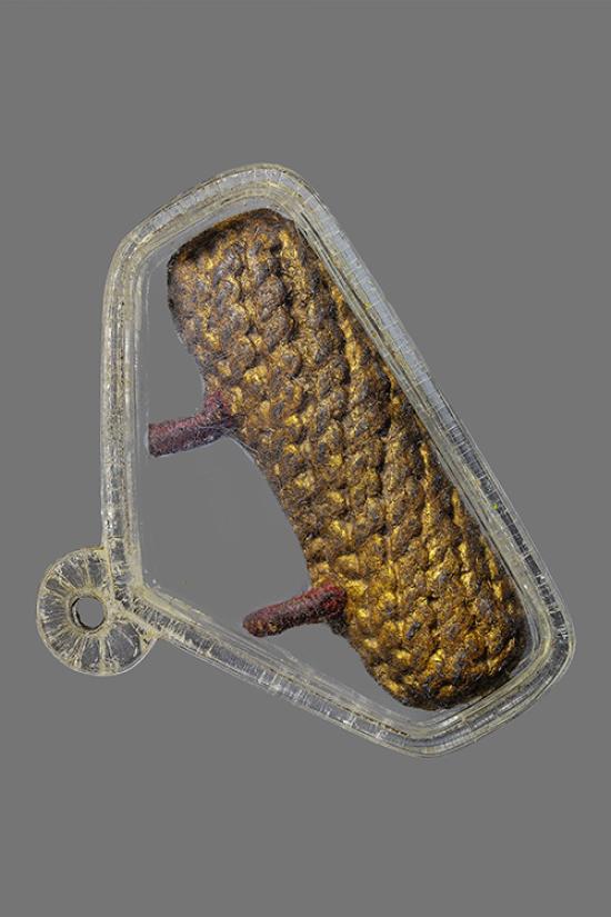ตะกรุดถักเชือกลงลงทองเก่ามากห่วงทองแดงมีถักเชือกแดงที่หูคลาสสิกไม่ทราบที่