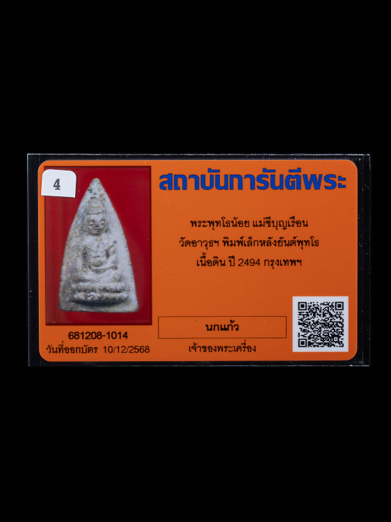 พระพุทโธน้อย แม่ชีบุญเรือน วัดอาวุธฯ พิมพ์เล็กหลังยันต์พุทโธ (เนื้อดิน) ปี 2494 สวยเดิม!!! เหมาพระตามบ้านและพระที่เก็บเก่ามาลงวัดใจทุกรายการค่ะ เริ่มที่ 260 บาท !!! กดที่ค้อนดูได้ค่ะ