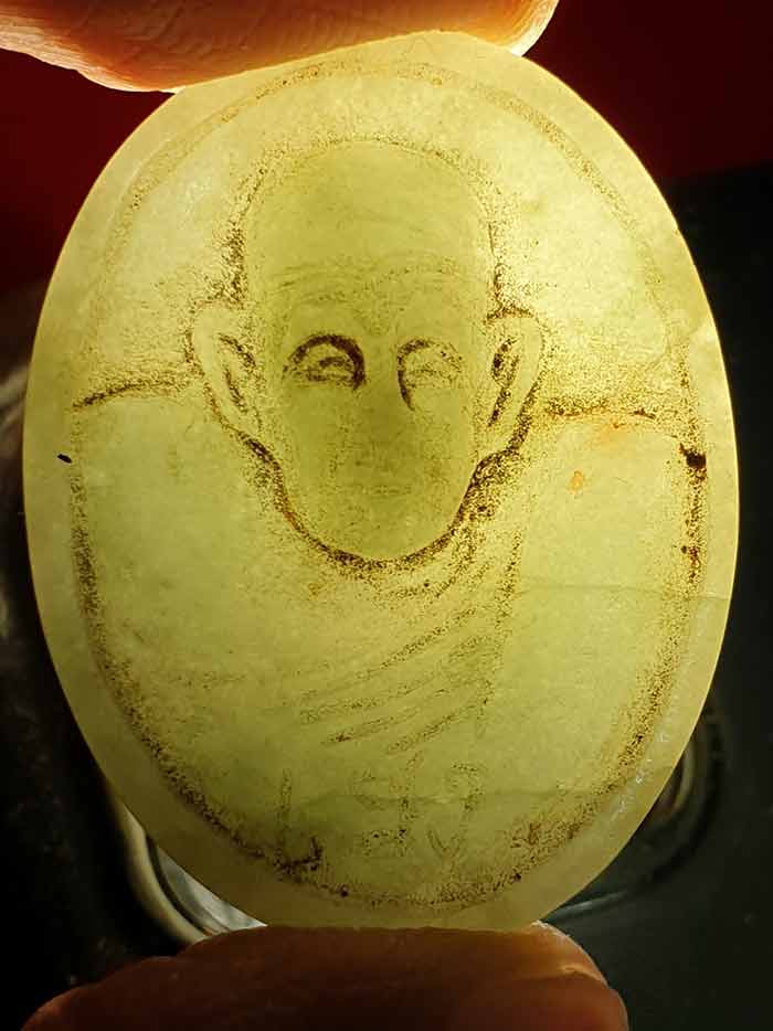 รายละเอียด หยกแกะหลวงพ่อเฮง วัดมหาโพธิ์ใต้ ปี 52 เคาะเดียว 200