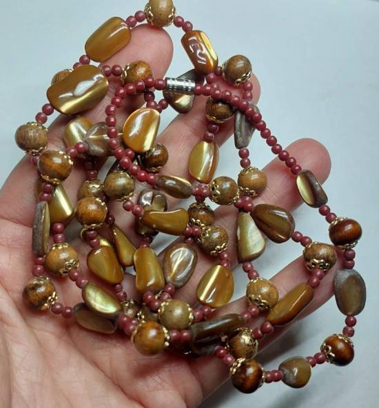 ***วัดใจ**สร้อยคอเก่าญี่ปุ่น หินผสมลูกปัดไม้ ยาวๆ 42 นิ้ว สวยๆ |