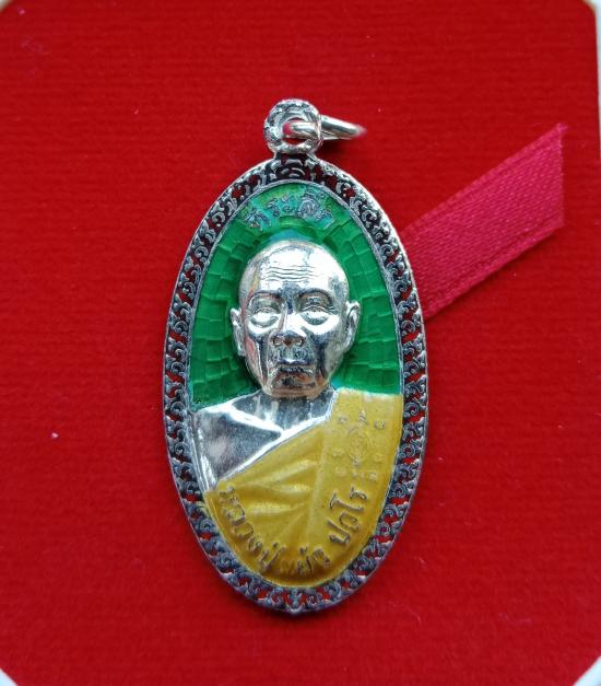 เหรียญใบขี้เหล็กหลัง สธ. เนื้อเงินลงยา หลวงปู่แผ้ว วัดรางหมัน อ.กำแพงแสน จ.นครปฐม ปี2556 หมายเลข1146 พร้อมกล่อง ตามรูป