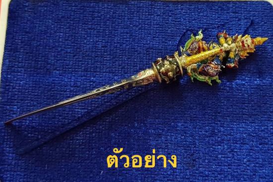 เคาะเดียวแดง 250 มีดหมอท้าวเวสุวรรณ รุ่นพินัยกรรมเศรษฐี หลวงปู่สอ ขันติโก วัดโพธิ์ศรี จ.นครพนม ยาว 3 นิ้ว เนื้อทองขาวลงยาราชวดี ซีลเดิมยังไม่ได้แกะ |