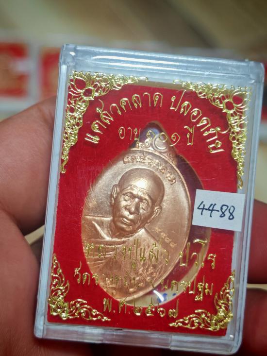 หลวงปู่แผ้ว เหรียญ แคล้วคลาด ปลอดภัย เนื้อทองแดง เลข 4488 สภาพสวย พร้อมกล่องครับ |