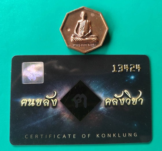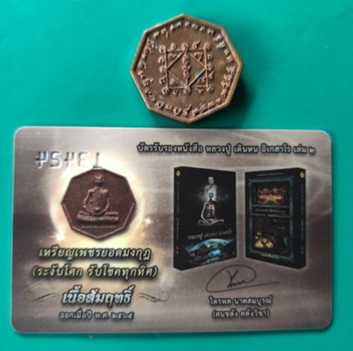 เหรียญสมนาคุณเนื้อสัมฤทธิ์ (เหรียญหล่อหลวงปู่ เดินหน อิเกสาโร รุ่นแรก เพชรยอดมงกุฎ (ระงับโศก รับโชคทุกทิศ) พร้อมบัตรรับรองหนังสือ หลวงปู่ เดินหน อิเกสาโร เล่ม 2 หมายเลข 13424 |
