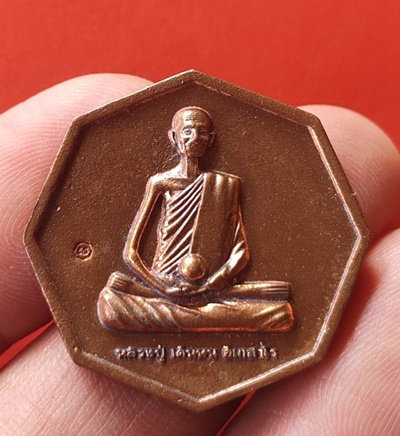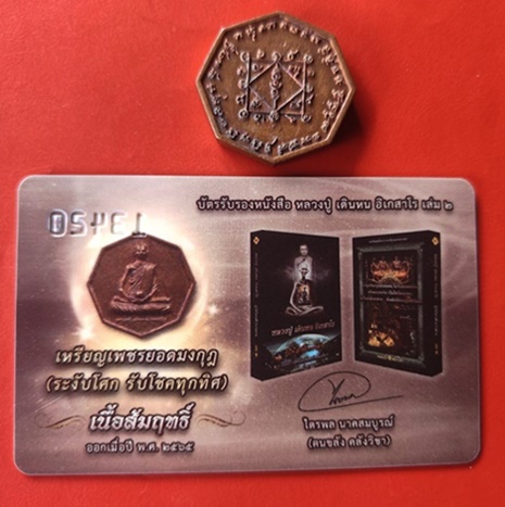 เหรียญสมนาคุณเนื้อสัมฤทธิ์ (เหรียญหล่อหลวงปู่ เดินหน อิเกสาโร รุ่นแรก เพชรยอดมงกุฎ (ระงับโศก รับโชคทุกทิศ) พร้อมบัตรรับรองหนังสือ หลวงปู่ เดินหน อิเกสาโร เล่ม 2 หมายเลข 13420