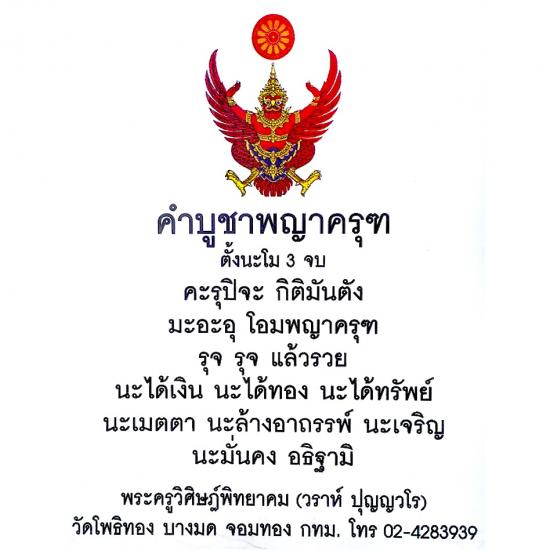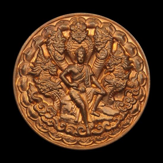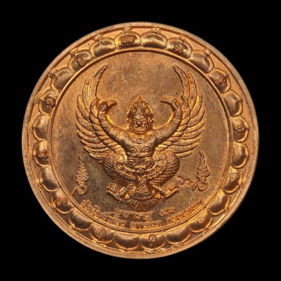 เหรียญบูชาครู พญาครุฑ ด้านหลังท้าวพญามุจรินทร์นาคราช พระอาจารย์วราห์ วัดโพธิ์ทอง บางมด รุ่นบูชาครู ๕๐ เนื้อทองแดง ตอกโค๊ต |