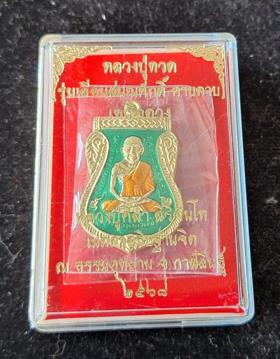 วัดใจ หลวงปู่ทวด หลวงปู่ศิลา เมตตาอธิษฐานจิต รุ่นเลื่อนสมณศักดิ์ เหนือดวง เนื้อทองทิพย์ ลงยา No.9 |