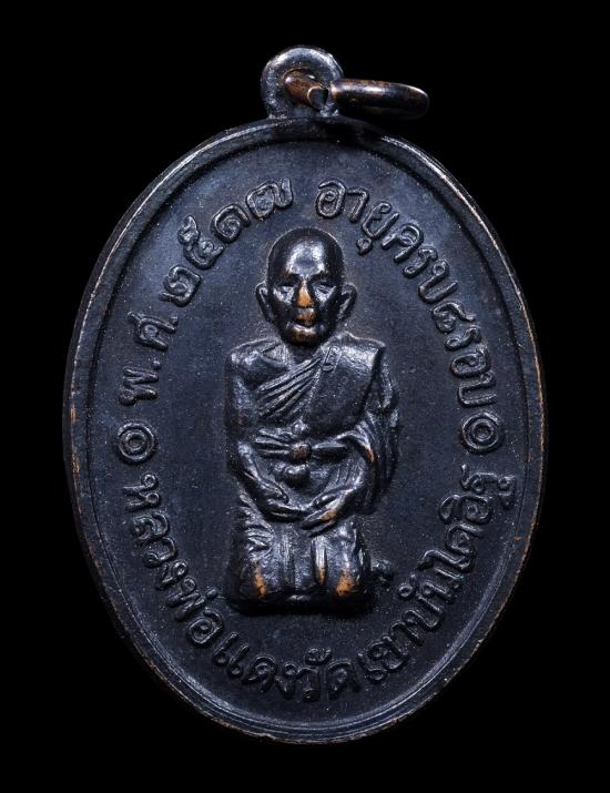 เหรียญคุกเข่า รุ่นสุดท้าย พิมพ์สองขีดบาง เนื้อทองแดง ปี 2517 หลวงพ่อแดง วัดเขาบันไดอิฐ จ.เพชรบุรี แดงเคาะแรก