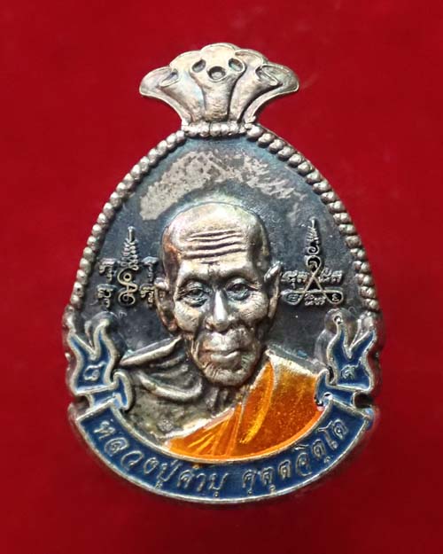 เหรียญเนื้อเงินลงยา (หนัก 10.7 กรัม) สร้างจำนวนเพียง ๘๙ เหรียญ (เท่าอายุหลวงปู่) ตอกโค๊ต "คำบุ" หมายเลข ๑๑ สภาพสวย...