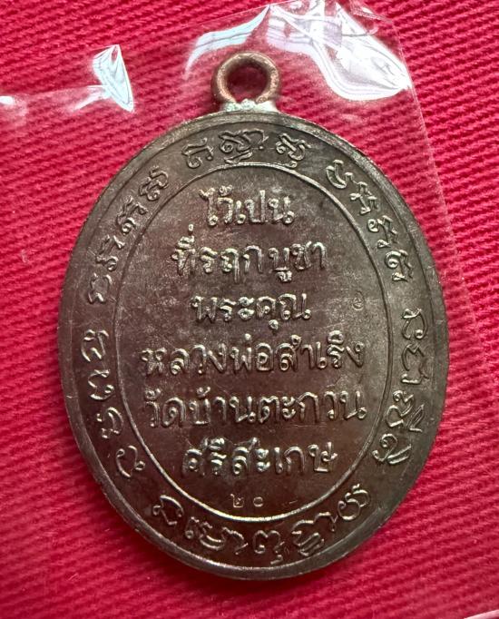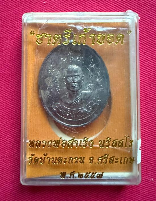 วัดใจไปเลย เหรียญชาตรีเก้ายอด หลวงพ่อสำเริง วัดบ้านตะกวน ปี 2557 เนื้อนวะ ตีขอบกระบอกหูเชื่อม หมายเลข 20 |
