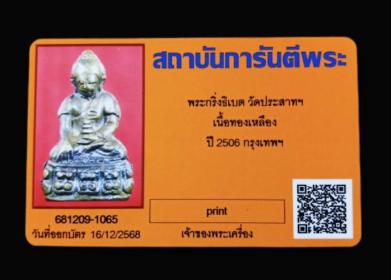 พระกริ่งธิเบต วัดประสาทฯ เนื้อทองเหลือง พ.ศ.2506 พร้อมบัตรรับรอง ครับ