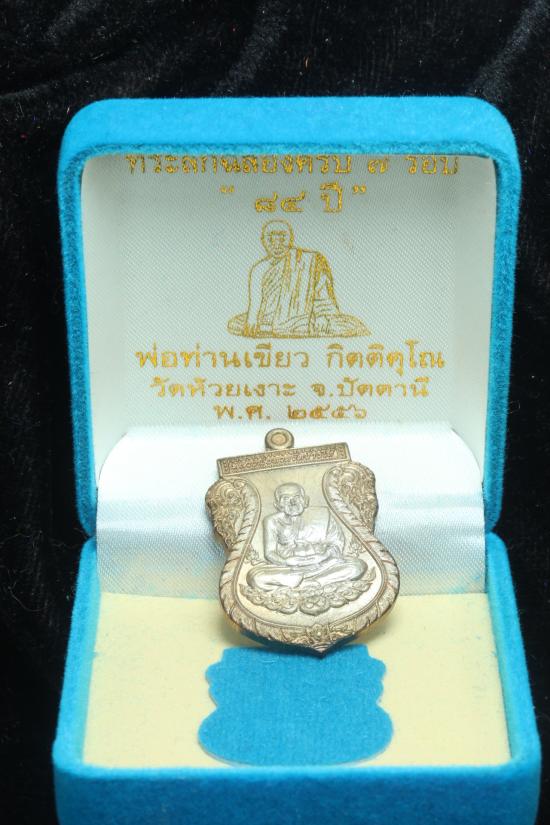 **นวะแก่เงิน โคตรสวย เหรียญสวย หายากเคาะเดียว ** เหรียญ ที่ระลึกฉลองครบ 7 รอบ 84 ปี หลวงพ่อเขียว วัดห้วยเงาะ ปัตตานี ปี 2556 เนื้อนวะ / |