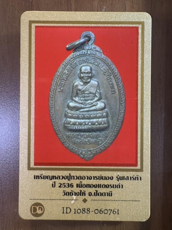 ชื่อพระเครื่อง เหรียญหลวงปู่ทวด หลังอาจารย์ทิม-อาจารย์นอง วัดทรายขาว จ.ปัตตานี ท่านอาจารย์นอง ปลุกเสก เนื่องในงานอนุสรณ์สร้างวิหารวัดทรายขาวในพิธีเสาร์ 5 เสาร์ห้า 27 มีค.2536 พระเลี่ยมกันน้ำพร้อมใช้พร้อมบัตรการันตี