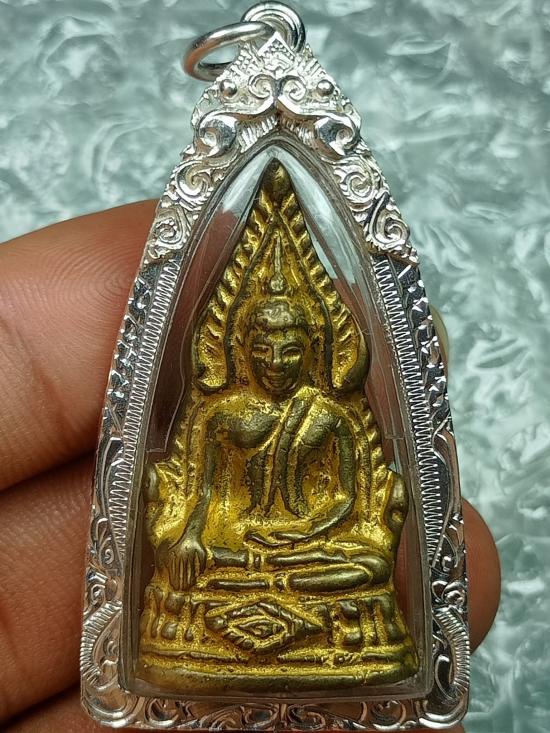 พระพุทธชินราช วัดบางด้วน เนื้อทองผสม ตอกโค๊ตใต้ฐาน ปี2493 อุดกริ่งดัง รุ่นโบสถ์ลั่น (หลวงปู่เผือกร่วมพิธีปลุกเสก) จ.สมุทรปราการ สภาพสวยเดิมๆ พร้อมเลี่ยมเงินงานมืออย่างดี