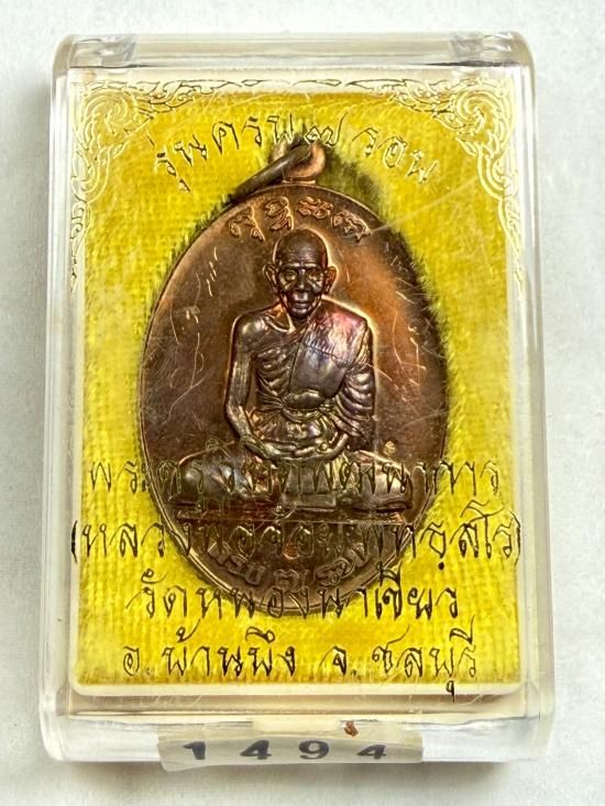 ด้านหน้าเหรียญมีรอยจาร เนื้อทองแดง หมายเลข 1494 ครับ |
