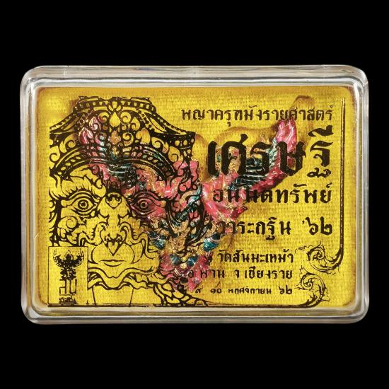 พญาครุฑมังรายศาสตร์ " เศรษฐีอนันตทรัพย์ " ครูบาวิรุต ญาณสํวโร วัดสันมะเหม้า อ.พาน จ.เชียงราย พิมพ์ใหญ่ เนื้อชนวนทองขาว ลงยาองค์ชมพู หมายเลข ๒๕๑ แยกชุดกรรมการ พร้อมกล่องเดิม |