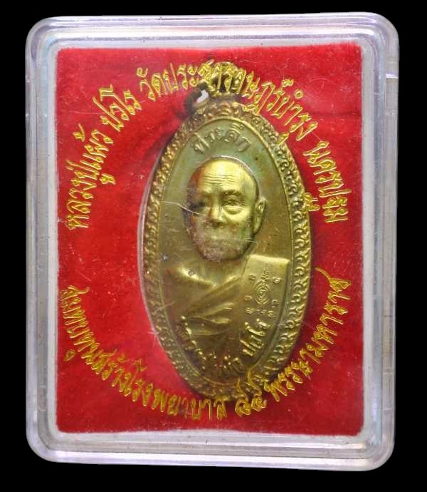 เหรียญใบขี้เหล็กหลังส.ธ. หลวงปู่แผ้ว วัดรางหมัน จ.นครปฐม เนื้อทองฝาบาตร