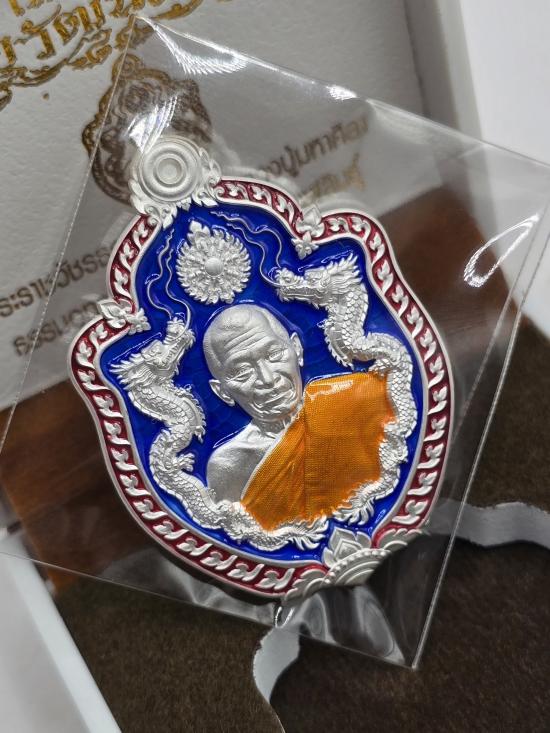 เหรียญ มังกรคู่ อายุวัฒนมงคล 81ปี หลวงปู่มหาศิลา หลวงปู่ศิลา สิริจันโท ธรรมอุทยาน วัดพระธาตุหมื่นหิน จ.กาฬสินธุ์ เนื้อเงินลงยาน้ำเงิน เลข ๑๙๒ มีกล่องเดิม |