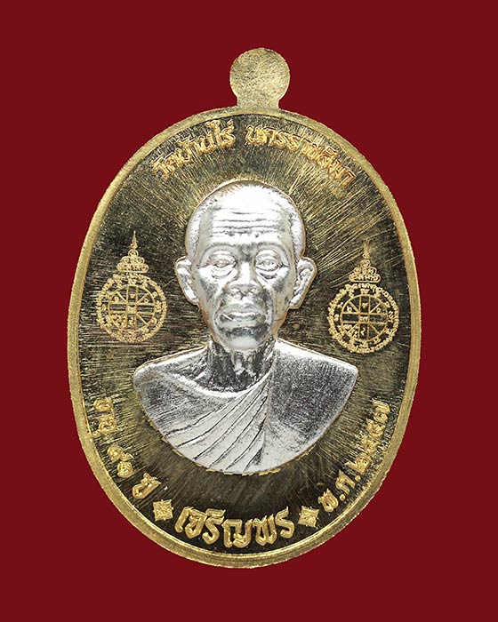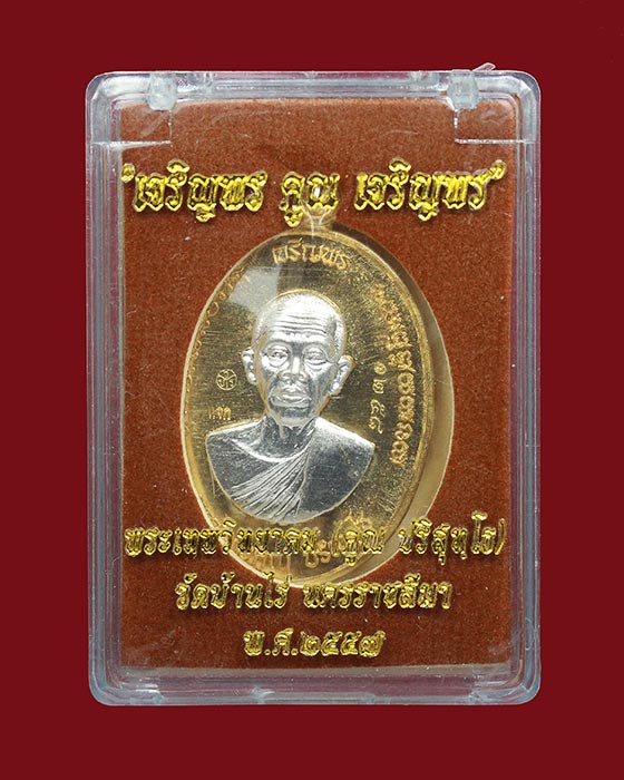 เหรียญเจริญพรหลวงพ่อคูณพิมพ์สองหน้าเนื้อกะไหล่ทองหน้ากากเงินปี 57