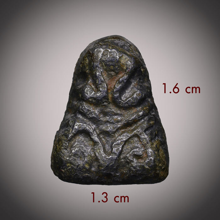 พระปิดตา เนื้อตะกั่วเก่า ด้านหลังมีจารยันต์(ไม่ทราบที่) ขนาดพระ ฐาน 1.3cm สูง 1.6 cm สภาพเก่ามีอายุ |