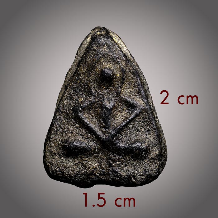 (วัดใจ)พระพุทธ เนื้อผงคลุกรัก พิมพ์แขนหักศอก (ไม่ทราบที่)ด้านหลังจารย์ยันต์แบบเปียก ขนาดพระ ฐาน 1.5 cm สูง 2 cm |
