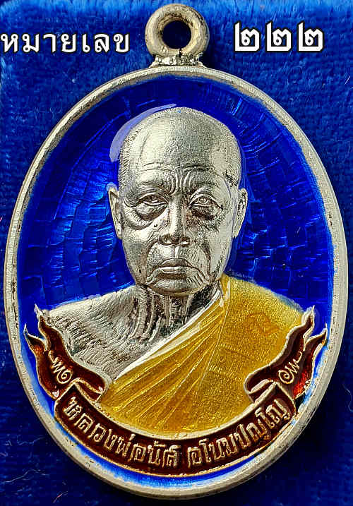 หมายเลขสวยตอง ๒๒๒ เนื้อเงินลงยา เหรียญห่วงเชื่อมรุ่นแรก หลวงพ่อนัส วัดอ่าวใหญ่ ตราด ปี 58 พร้อมกล่องกำมะหยี่เดิม