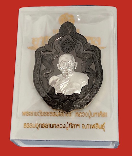 ชื่อพระเครื่อง หลวงปู่มหาศิลา อายุวัฒนะมงคล81 มังกรคู่ เนื้อนวะหน้ากากเงิน จมูก100 เลข649กล่องเดิม สภาพคัดสวยๆ
