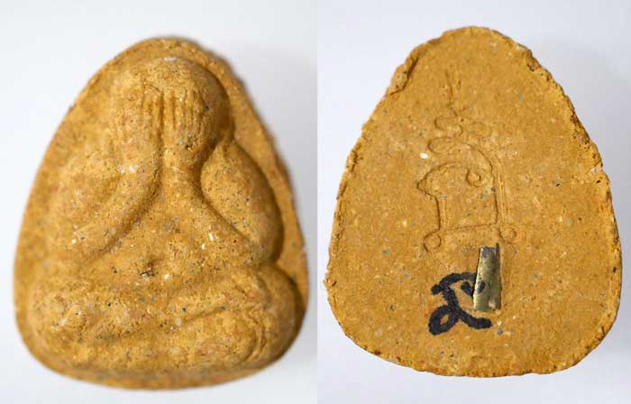 *วัดใจ*(ปกติจะเห็นแต่เนื้อดินเผา) แต่ชุดนี้เป็น พระเนื้อผงชุดพิเศษ เนื้อผงขมิ้นเสก สีเหลืองอำพัน (หายาก) หลังฝังตะกรุด1 ดอกจารมือนะอุดทัง จารหมึกดำ ยันต์ นะ หลวงพ่อตัด วัดชายนาปลุกเสก ปี 50 |