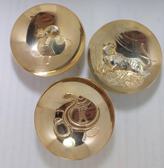 ***วัดใจ ***ชุดพานของสะสม งานนอก 24k GPชุบทองคำ 99%. ลายมงคล 6 ชิ้น ลายนักษัตรมงคล สวยๆ |