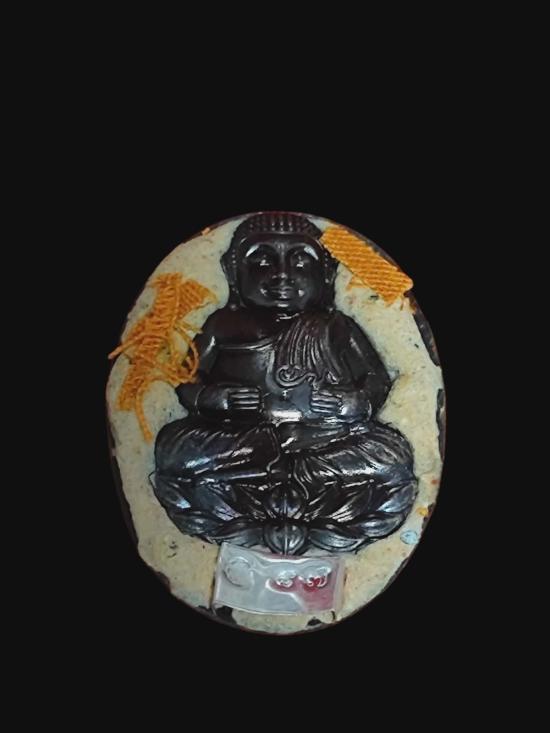 ล็อกเก็ตพหูระมานรุ่น1+ด้านหลังอุดหน้ากากพระสังกัจจายน์ (จารหมึกทองหลวงปู่ศิลา) ฝังจีวรหลวงปู่ศิลา