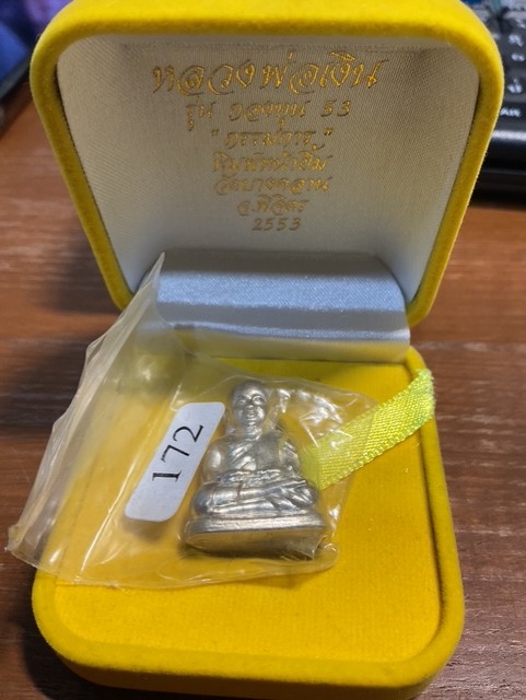 หลวงพ่อเงิน กองทุน 53 รูปเหมือนปั๊ม พิมพ์หน้ายิ้ม เนื้อเงินอุดกริ่ง แยกจากชุดกรรมการ หมายเลข 172 พระสวยๆ ผิวสวยเดิม กริ่งดัง กล่องเดิมๆครับ |