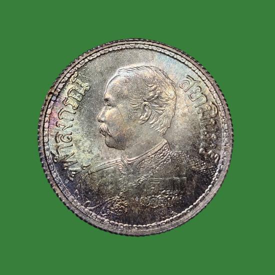 เหรียญ เนื้อเงิน รัชกาลที่ 5 หลวงพ่อเกษม เขมโก พ.ศ.2535 ด้านหลังตอกโค้ด