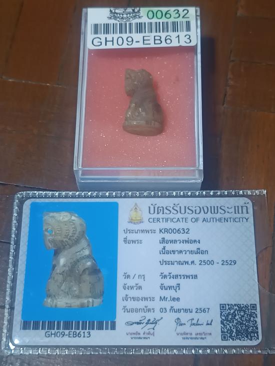 เสือเขาควายเผือก หลวงพ่อคง วัดวังสรรพรส พร้อมบัตรสมาคม แดง2800 ลดปีใหม่ครับ