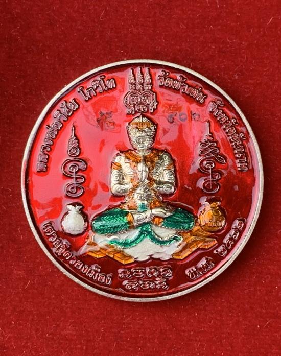 เหรียญหนุมาน รุ่นเศรษฐีครองเมือง ไตรมาส ๖๖ หลวงพ่อวิชัย โกวิโท วัดหัวเด่น จ.ชัยนาท เนื้ออัลปาก้า ลงยาแดง หมายเลข 402 |