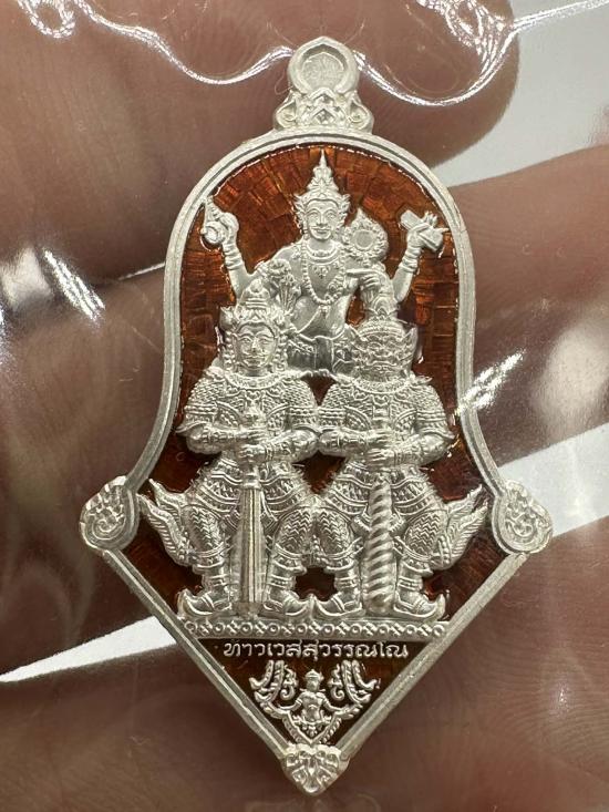 ท้าวเวสสุวรรณโณ จตุมหาราชิกา ปาง 3เทพ ปฐมพรหมจตุมหาราชิกา รุ่น ๑ มีแล้วไม่จน เนื้อเงินบริสุทธิ์ ลงยาแดง หลวงพ่ออิฏฐ์ วัดจุฬามณี จ.สมุทรสงคราม กล่องครบ