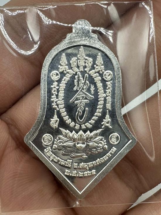 ออกวัด 2,500 เหรียญกันชง พิมพ์ใหญ่ ปี 65 ทรงจำปี หลวงพ่ออิฏฐ์ วัดจุฬามณี จังหวัดสมุทรสงคราม เนื้อเงิน ลงยาสีแดง สวยมากๆ กล่องครบครับ