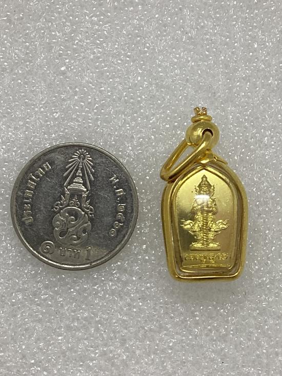 เคาะเดียวแดง 100 เหรียญปรกใบมะขาม ท้าวเวสสุวรรณ พันล้านมหาเวทย์ วัดสันมะเหม้า เชียงราย สูง 1.5 ซ.ม. |