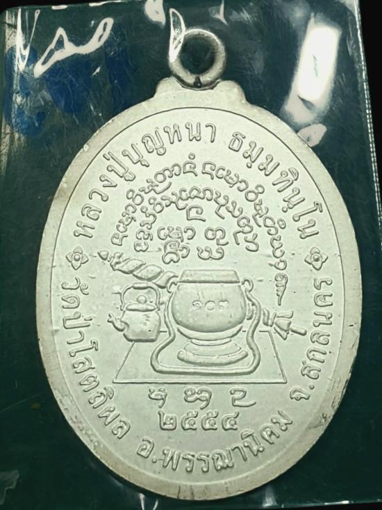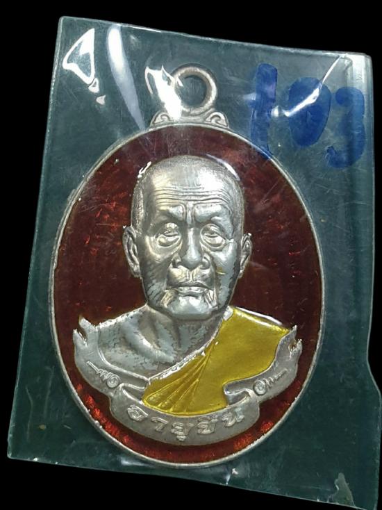 เหรียญห่วงเชื่อม"รุ่นอายุยืน" หลวงปู่บุญหนาโสภิตาราม เนื้อเงินลงยาสีแดง หมายเลข#๑๐๓ และมีโค้ตจีนด้านหลัง พร้อมกล่องเดิม