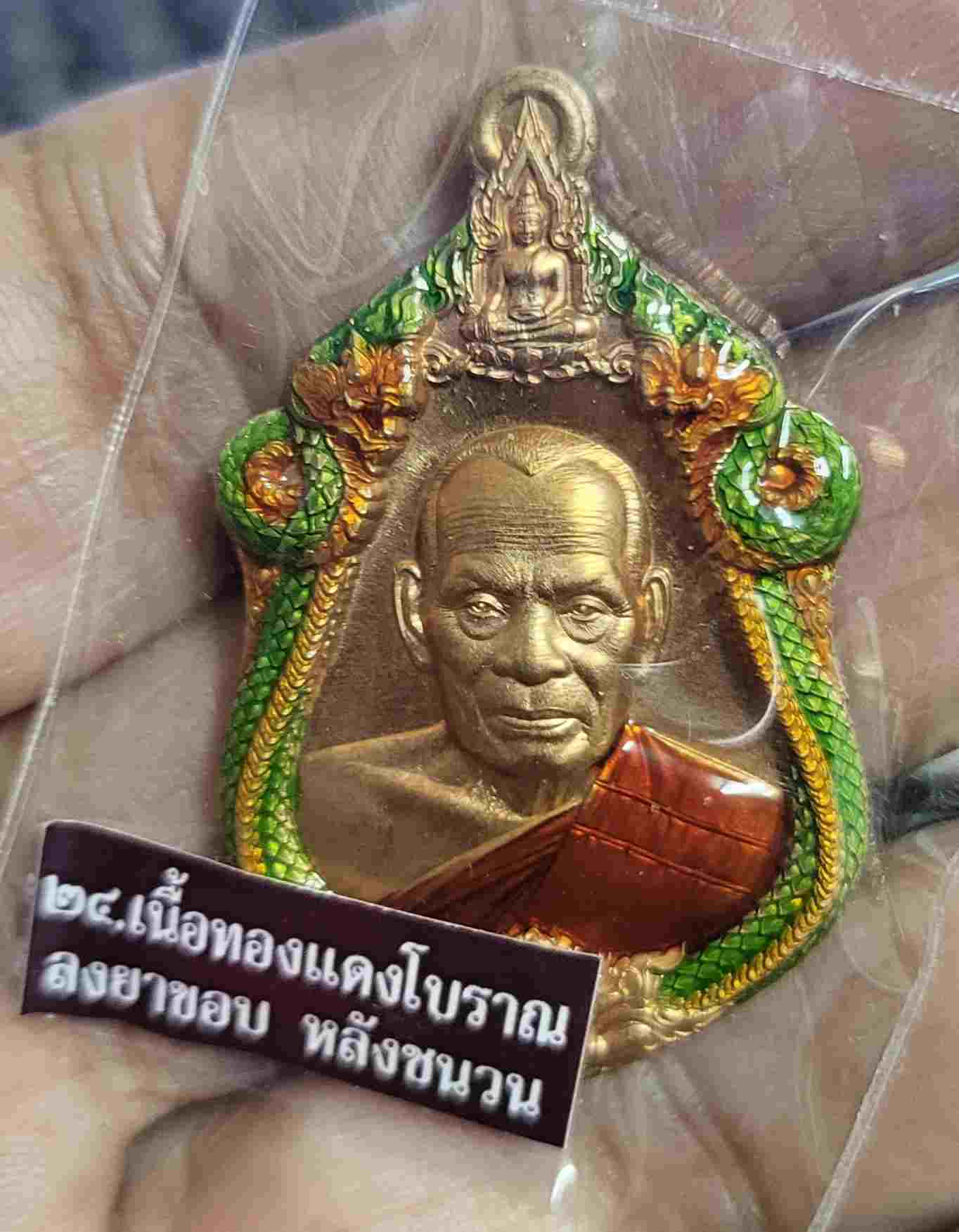 เคาะเดียวแดง เหรียญหลวงพ่อพัฒน์ รุ่นเจ้าสัวเจ้าคุณพัฒน์ บอยท่าพระจันทร์สร้าง ต้นฉบับเหรียญมีชีวิต เนื้อทองแดงโบราณลงยาขอบ หลังชนวน สภาพเดิม ซิลเดิม |