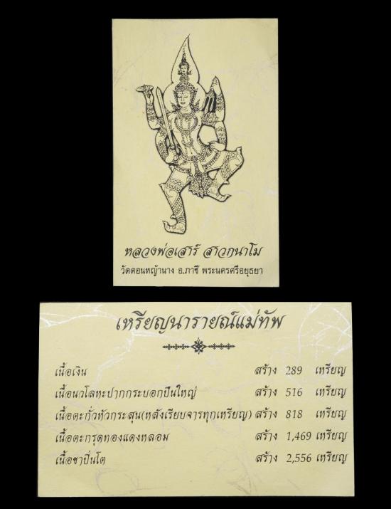 เหรียญนารายณ์แม่ทัพ หลวงพ่อเสาร์ วัดดอนหญ้านาง อยุทธยา เนื้อตะกรุดทองแดงหลอม สร้าง 1469 เหรียญ แดงเคาะแรก |