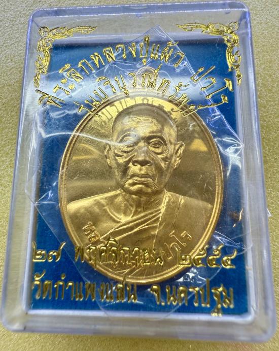 เหรียญหลวงปู่แผ้ว รุ่นบริบูรณ์ทรัพย์ เนื้อกระไหล่ทองกรรมการ วัดกำแพงแส นครปฐม ปี2554 สวยมากของกล่องเดิมค่ะ