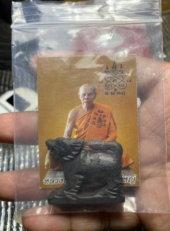 วัดใจ สิงห์ไม้พญางิ้วดำ แกะ ปี 63 (ขนาด 3.4 ซม) หลวงพ่อสิน วัดละหารใหญ่ ตอก พศ ตอก โค้ด เจาะขๅหน้าขๅหลัง สภาพสวย เดิมๆ ตัวใหญ่มากๆ