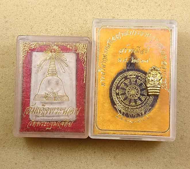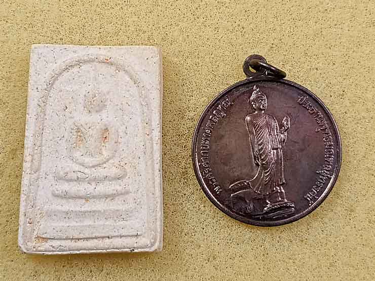 เหรียญพระศรีศากยะทศพลญาณ ประธานพุทธมณฑลสุทรรศน์ ปี 39 +สมเด็จพระนอน วัดปฐมเจดีย์ + พระปรกใบมะขาม รุ่นสอง รุ่นอุดมดี หลวงปู่หลิว ปี 38 |