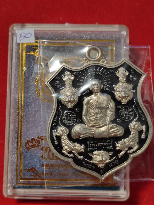 ชื่อพระเครื่อง วัดใจ...เนื้อ อัลปาก้าลงยาดำ หลังฤาษีจีวร เลข50 เหรียญ ๕ พยัคฆ์ หลวงพ่อยอด วัดตะคร้อ อำเภอโนนไทย จังหวัดนครราชสีมา
