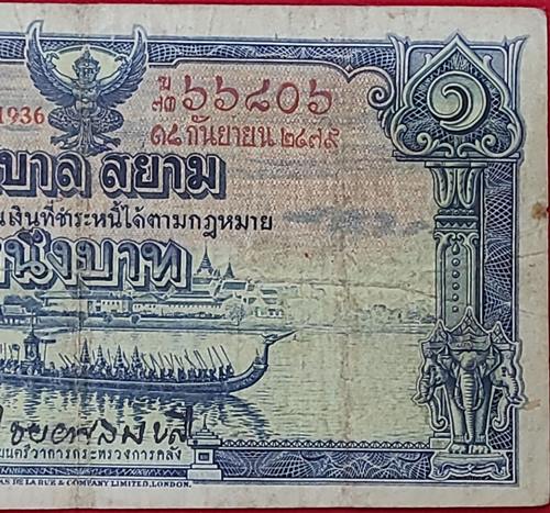 ธนบัตร 1บาท โทมัส รัชกาลที่ 8 หมายเลข 73D 66806 - ๗๓ฆ ๖๖๘๐๖ ลายเซ็น พระยา ไชยยศสมบัติ พิมพ์เมื่อ วันที่ 18 กันยายน 2479 |
