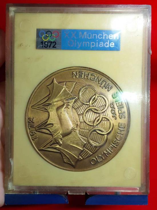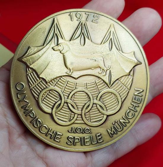 เหรียญที่ระลึกการแข่งขันกีฬาโอลิมปิกที่มิวนิก เยรมันนี ปี 1972 อายุ 53 ปี เนื้อบรอนซ์ (Bronze) เป็นเหรียญที่ระลึกที่ออกแบบโดยศิลปินชื่อดังชาวญี่ปุ่น ทาโร โอคาโมโตะ (Taro Okamoto)