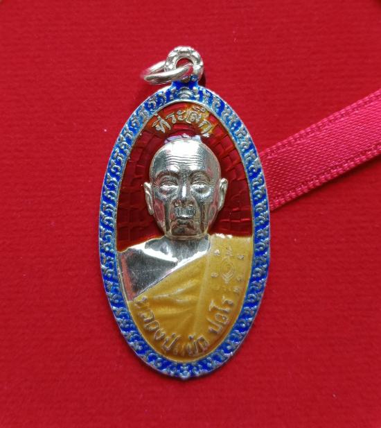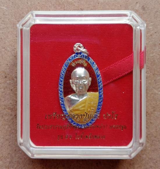 เหรียญใบขี้เหล็กหลัง สธ. เนื้อเงินลงยา หลวงปู่แผ้ว วัดรางหมัน อ.กำแพงแสน จ.นครปฐม ปี2556 หมายเลข527 พร้อมกล่อง ตามรูป